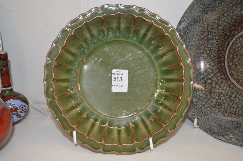 A Chinese green glazed ribbed bowl.