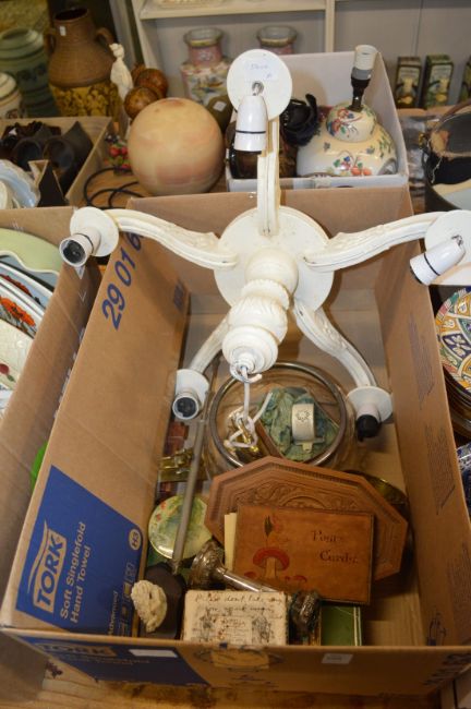 A painted wood chandelier and miscellaneous collectables.