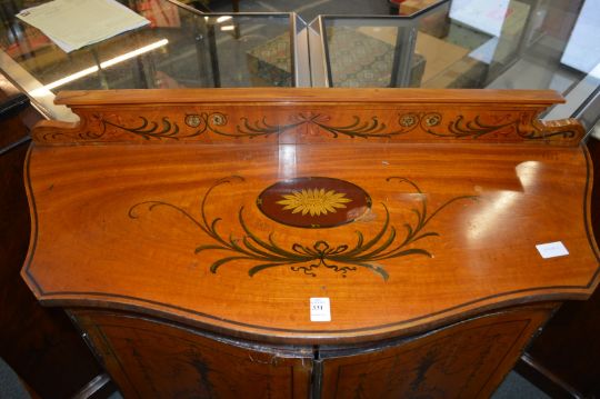 A good Sheraton revival painted satinwood serpentine fronted two door side cabinet.