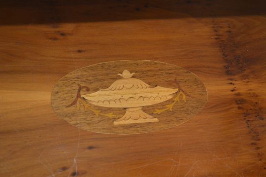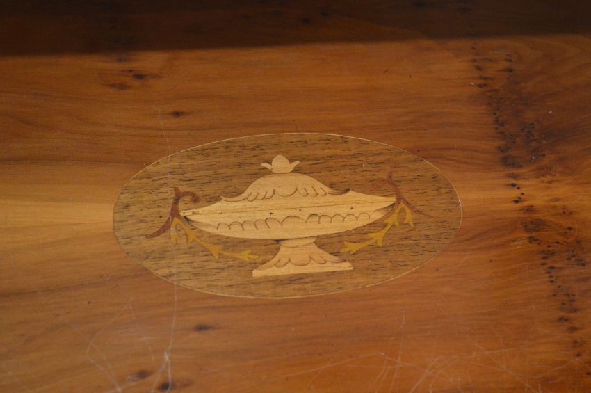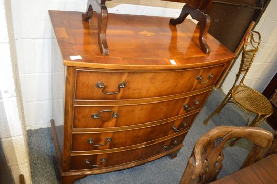 A good Georgian style yew wood bow front four drawer chest with inlaid decoration.
