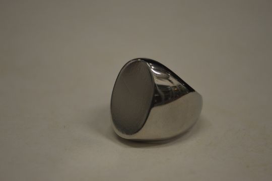 An unusual stainless steel gent's signet ring, size O1/2 (made by Mick Griffiths).