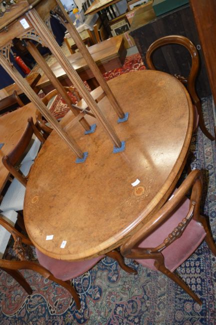 A good Victorian inlaid figured walnut oval Loo / breakfast table.