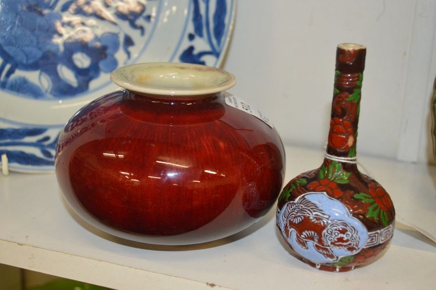 A small Chinese flambe vase and a little bottle vase.
