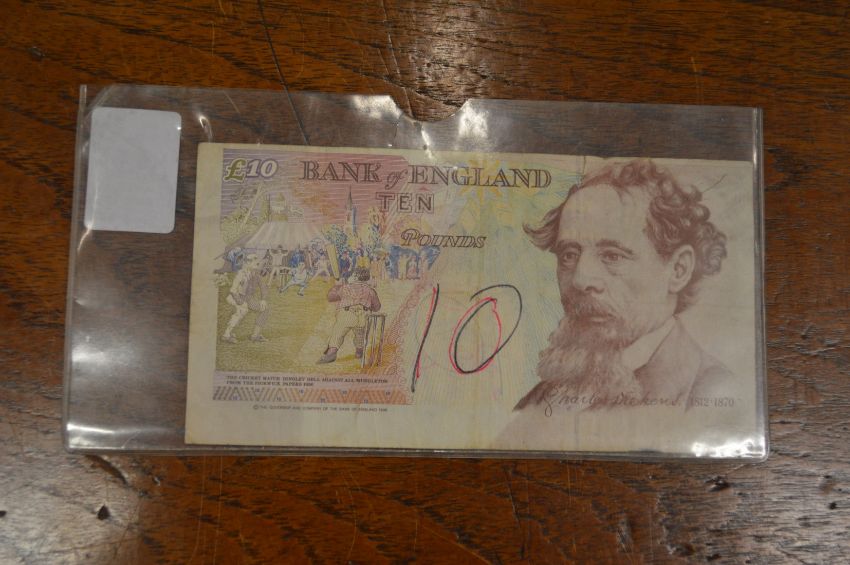 A misprinted £10 note.