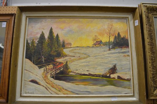Snowy landscape, possibly Russia, oil on board, signed.