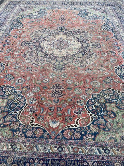 A large Persian carpet with floral decoration (some wear).