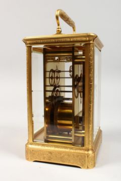 A SUPERB LARGE FRENCH BRASS CARRIAGE CLOCK by F. L. HAUSBURG A. PARIS, No. 2655, in an engraved case.
