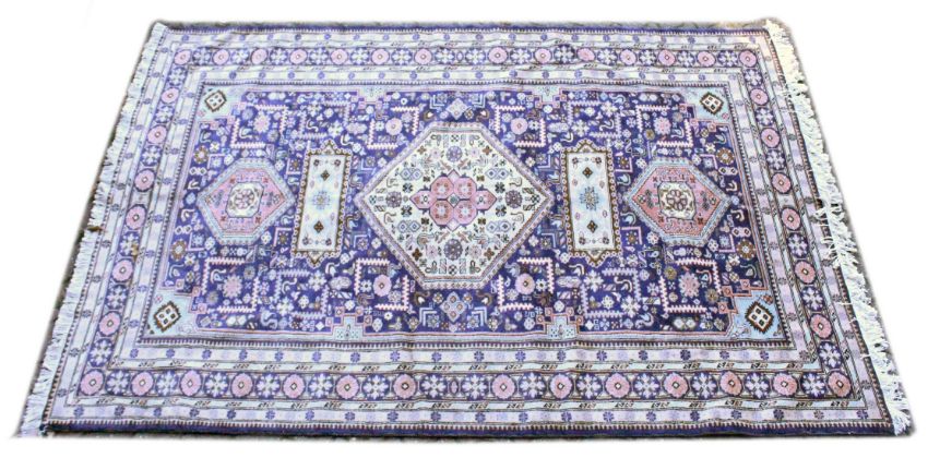 A PERSIAN CARPET, blue ground with a central large cream ground medallion.