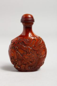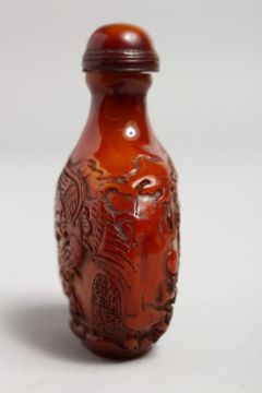 A CARVED AMBER SNUFF BOTTLE.