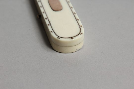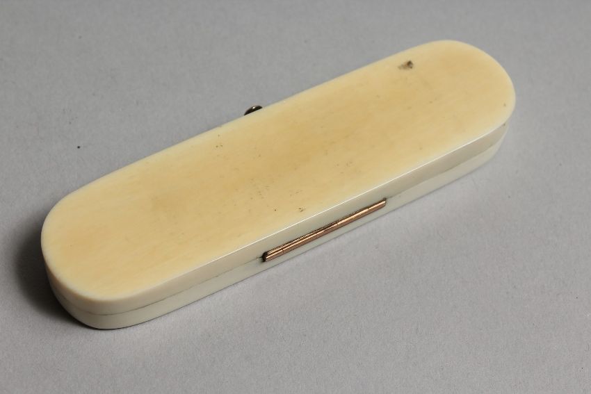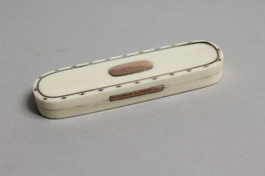 A GEORGIAN IVORY AND GOLD TOOTHPICK CASE, the inside with a mirror.