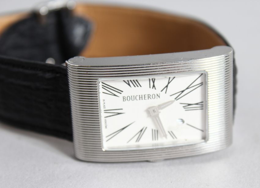 A BOUCHERON WRISTWATCH NO. 090 6233. with leather strap.
