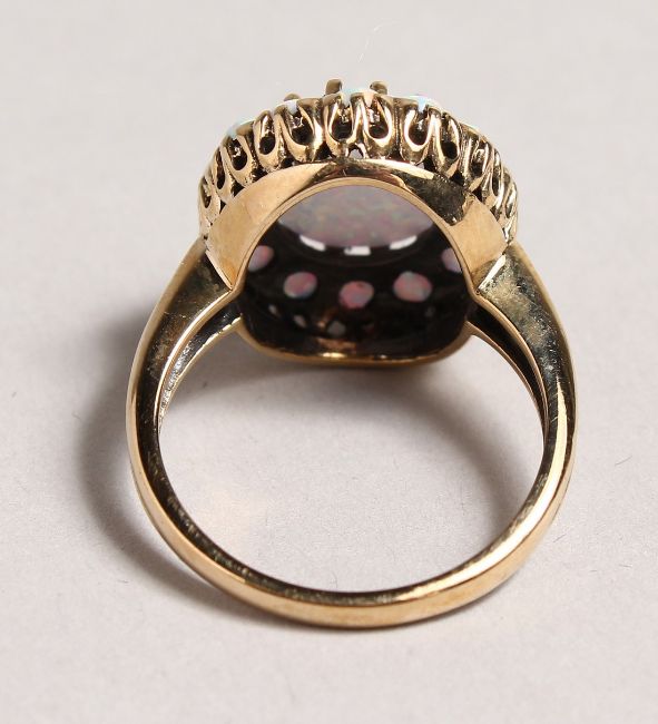 A 9CT GOLD OPAL CLUSTER RING.