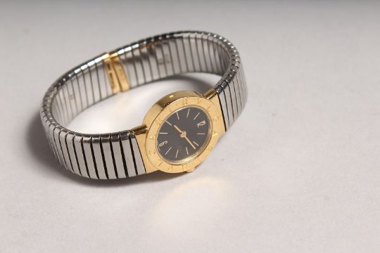 AN 18CT GOLD BULGARI WRISTWATCH with flexible strap, No. P73245, in a box.
