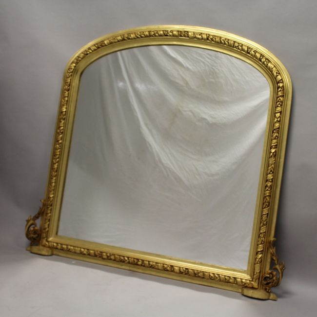 A GOOD GILTWOOD OVERMANTLE MIRROR with domed top.