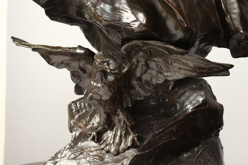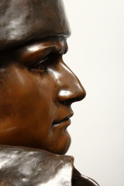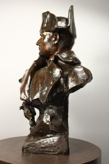 A SUPERB LARGE BRONZE BUST OF NAPOLEON, his head looking to his right, the naturalistic base with an eagle.