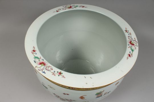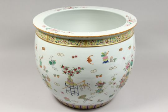 A GOOD CHINESE PORCELAIN JARDINIERE, famille rose with emblems.