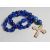 A ROMAN CAST IRON CROSS on a blue bead necklace.