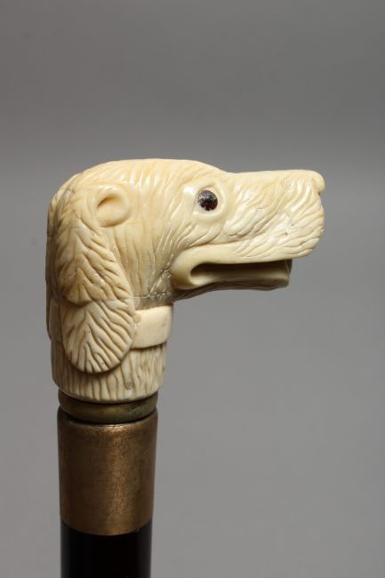 A WALKING STICK with bone handle, DOG.