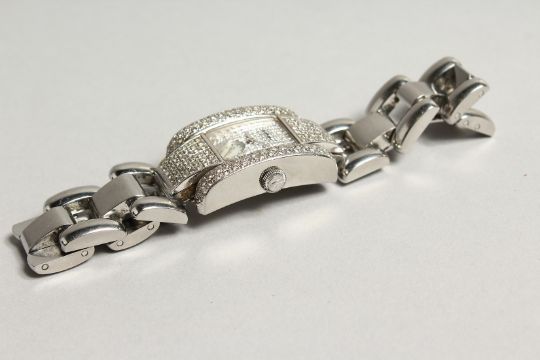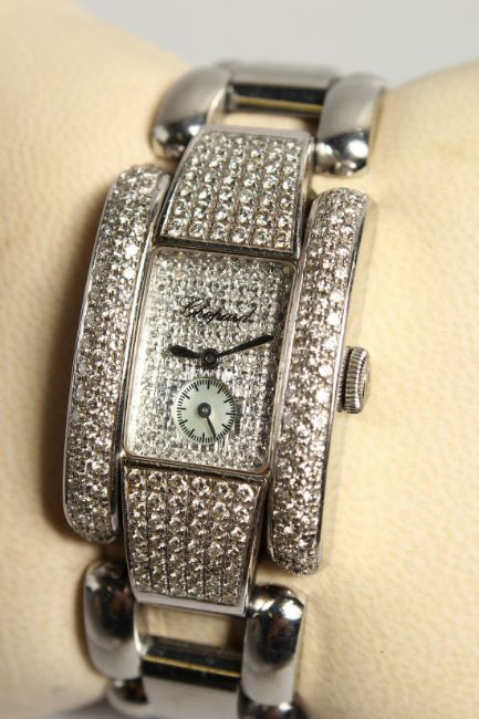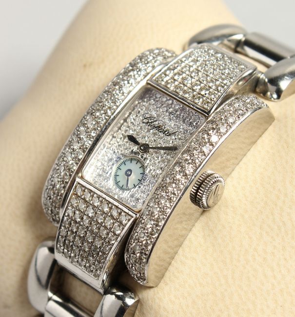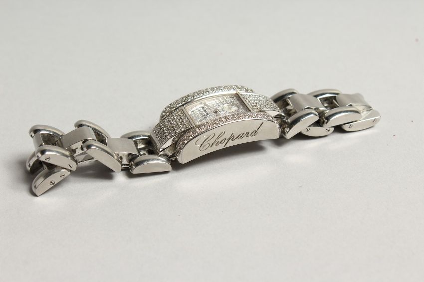 A VERY GOOD CHOPPARD DIAMOND SET WRISTWATCH, BOXED.