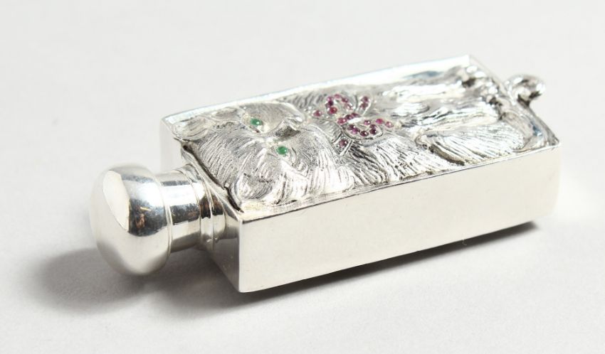 AN .800 RUBY AND EMERALD SET CAT PERFUME BOTTLE.