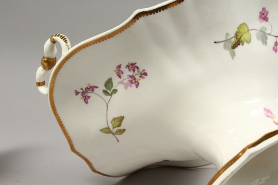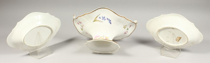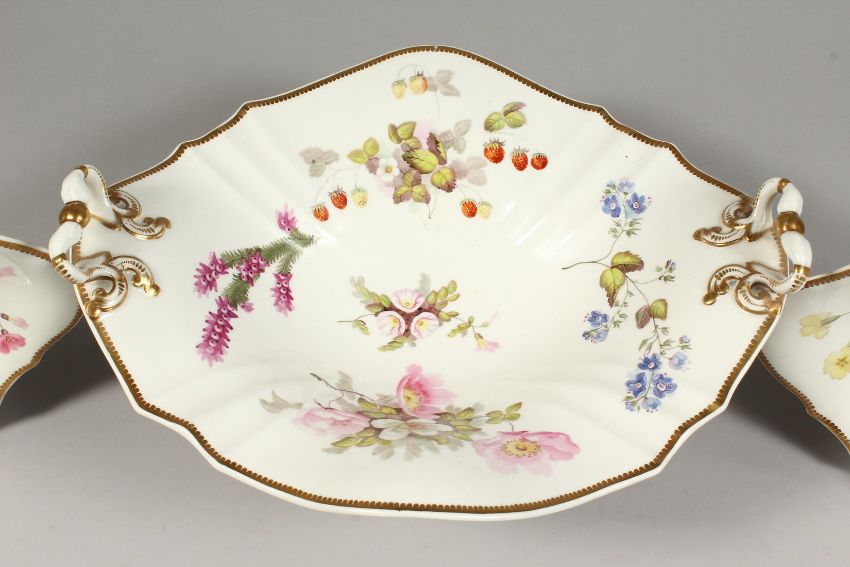 A FINE DANIEL OVAL TWO HANDLED COMPORT painted with flowers, painted by William Pollard and two oval bowls (3).
