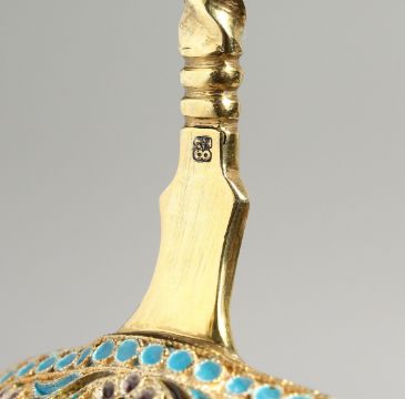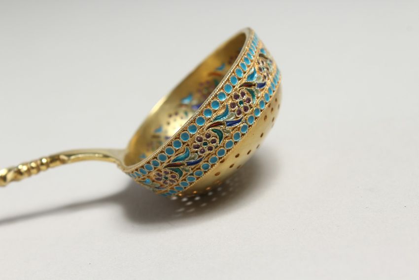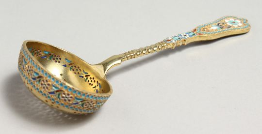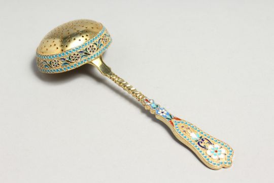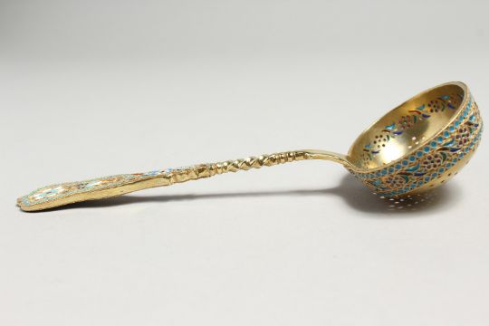 A RUSSIAN SILVER GILT SIFTER SPOON