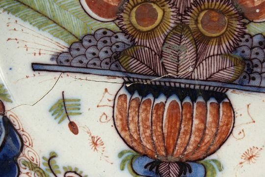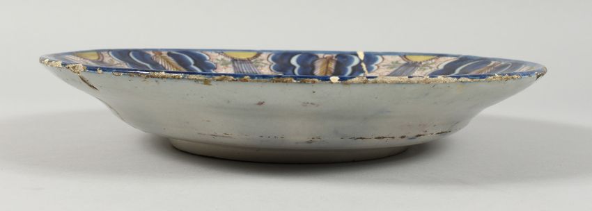 A LARGE DELFT TIN GLAZED CIRCULAR PLATE with flowers
