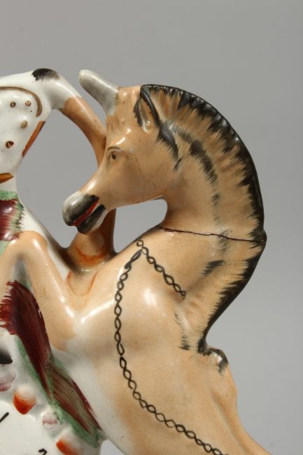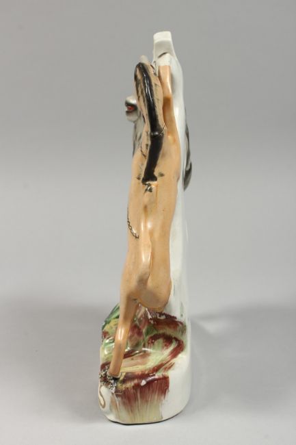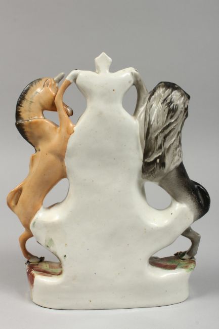A STAFFORDSHIRE CLOCK GROUP with lions and unicorns