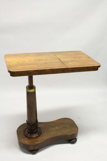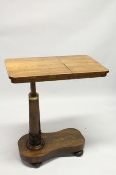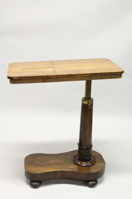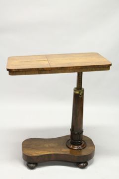 A GOOD VICTORIAN MAHOGANY BED TABLE with rectangular rising top.