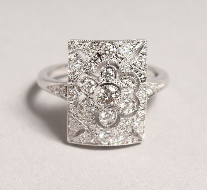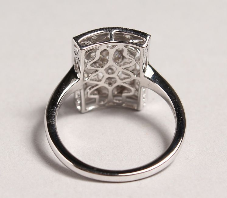 AN 18CT WHITE GOLD DECO DESIGN TABLET RING.