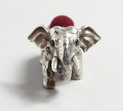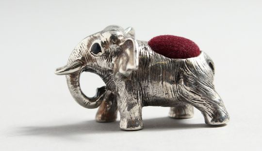 TWO SILVER ELEPHANT PINCUSHIONS.