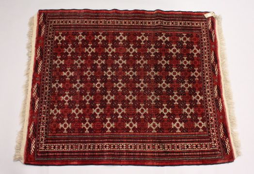 A TURKOMAN YAMUD CARPET, red ground with allover geometric design.