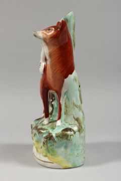 A STAFFORDSHIRE SPILL VASE with a figure of a fox with a bird in it's mouth.