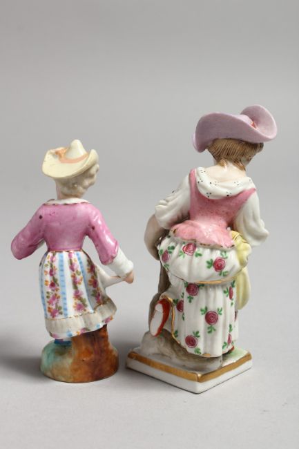 AN EARLY 19TH CENTURY CONTINENTAL FIGURE EMBLEMATIC OF AUTUMN, holding a scythe and grapes, and another of a girl holding her skirt.
