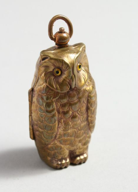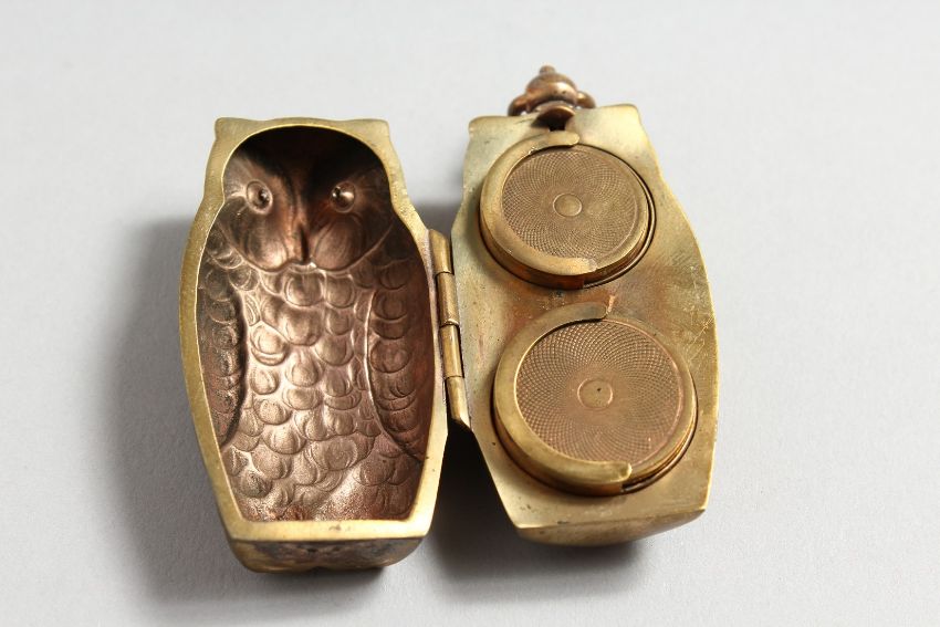 A BRASS DOUBLE SOVEREIGN OWL CASE.