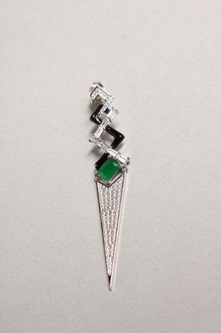 A PAIR OF SILVER DECO STYLE EARRINGS.