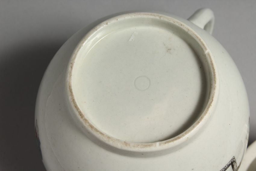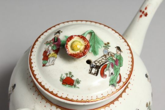 AN 18TH CENTURY WORCESTER TEAPOT AND COVER decorated with a Chinese family.