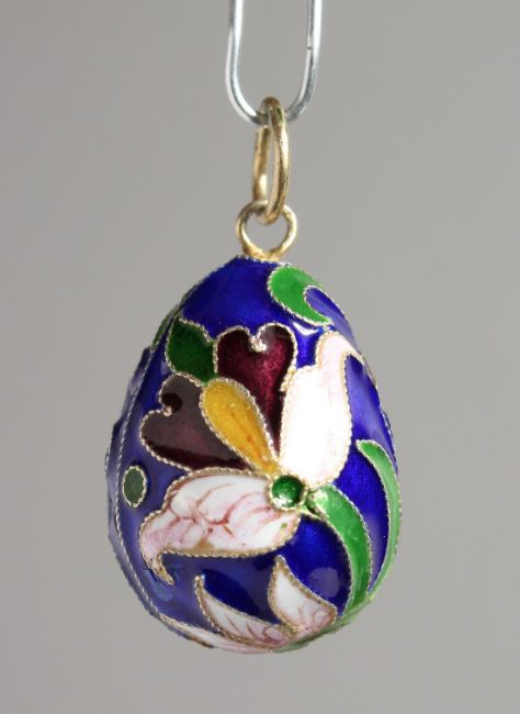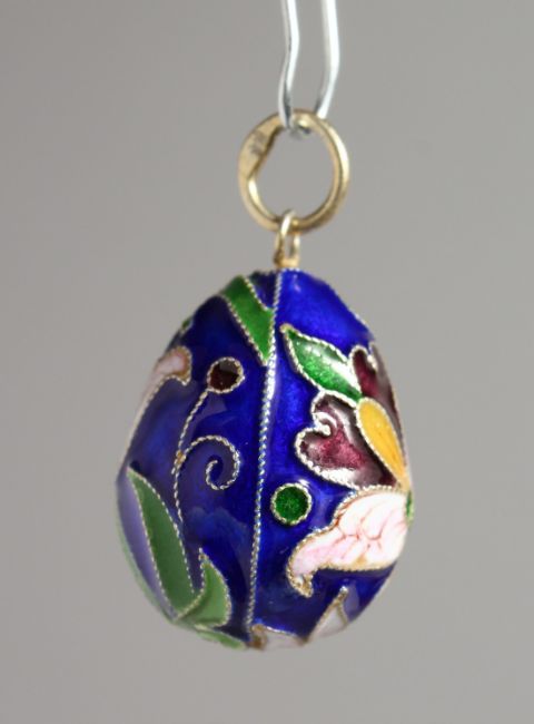 A RUSSIAN SILVER AND ENAMEL EGG PENDANT.