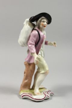 A CONTINENTAL PORCELAIN FIGURE OF A MAN, a hog on his back.