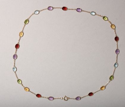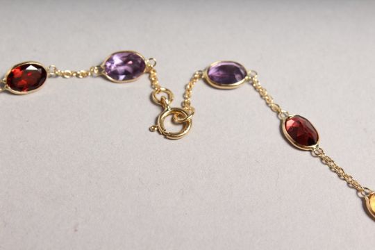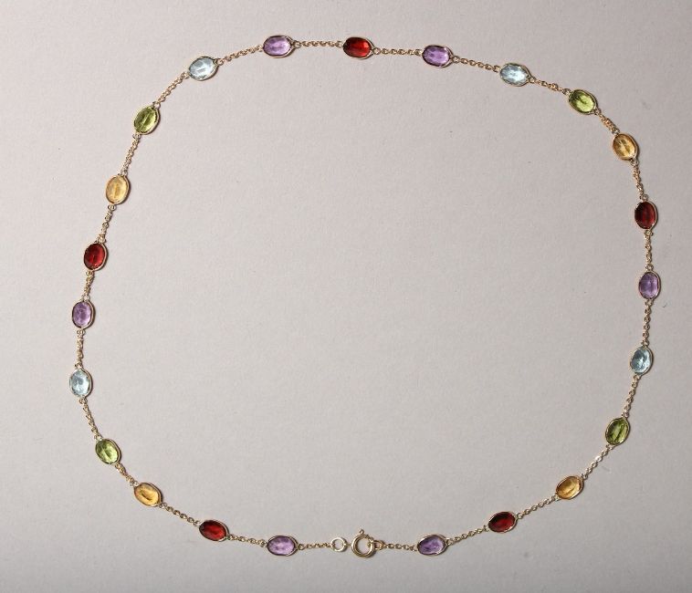 A GOOD 18CT YELLOW GOLD GEM SET NECKLACE.