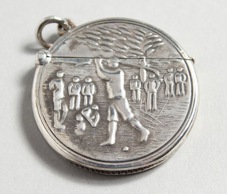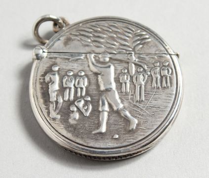A NOVELTY SILVER GOLFING VESTA.