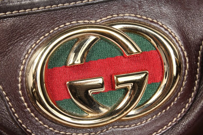 A GUCCI SOFT BROWN LEATHER HANDBAG.