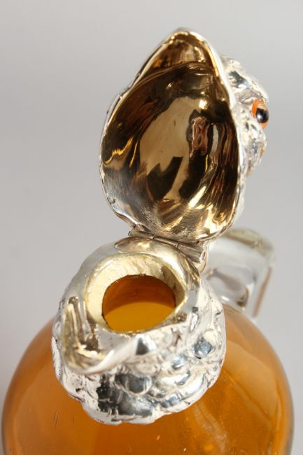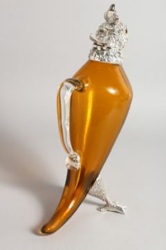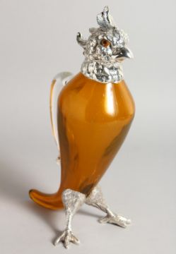 A SILVER PLATE AND GLASS COCKATOO CLARET JUG.