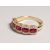 A VERY GOOD 18CT YELLOW GOLD, RUBY AND DIAMOND HALF HOOP RING.