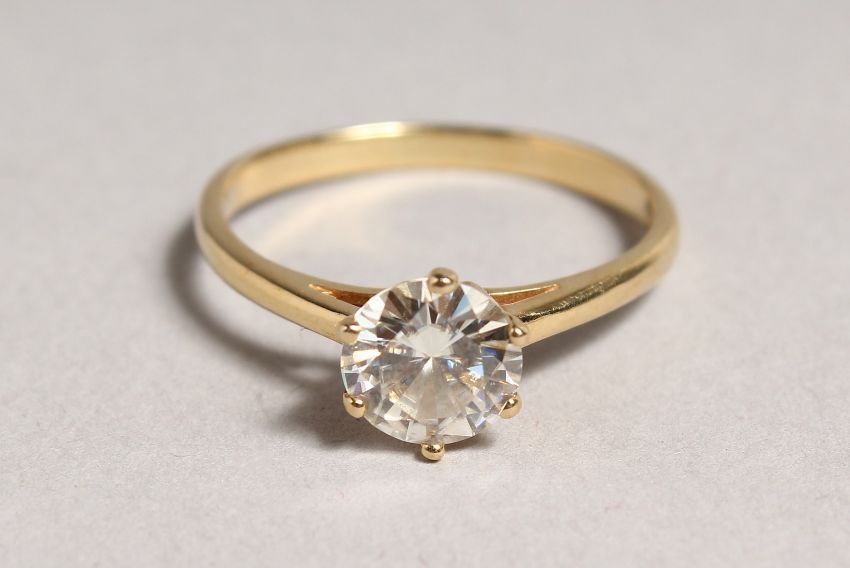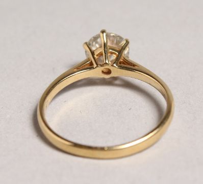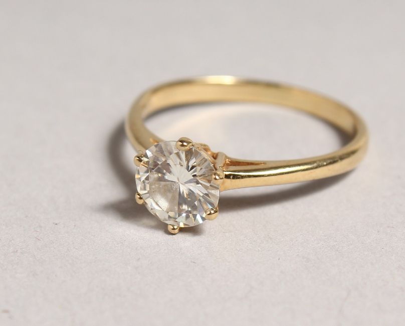 A GOOD 18CT GOLD SOLITAIRE DIAMOND RING.