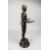 A CAST BRONZE FIGURE OF A STANDING MALE, his arms outstretched, holding a tray, on a circular base.