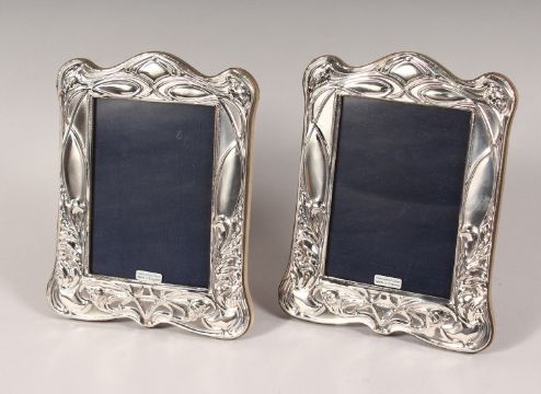 A PAIR OF SILVER UPRIGHT PHOTOGRAPH FRAMES.