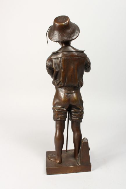 A BRONZE BOY with a fishing rod "PECHEUR".