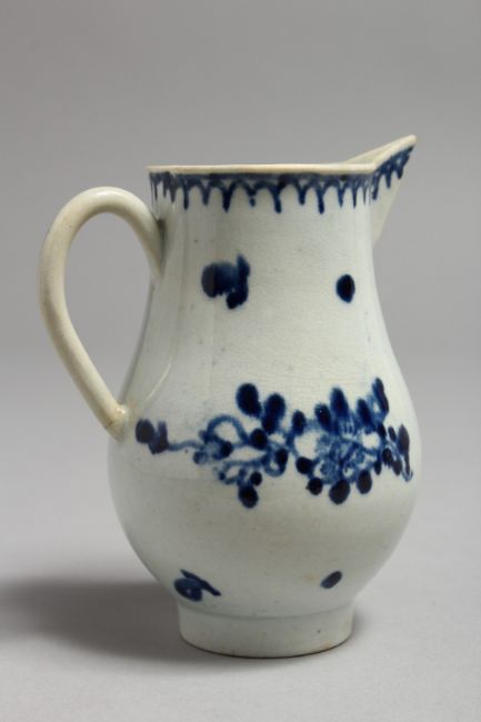 AN 18TH CENTURY LIVERPOOL SPARROW BEAK JUG painted in blue with Profile Bud pattern.