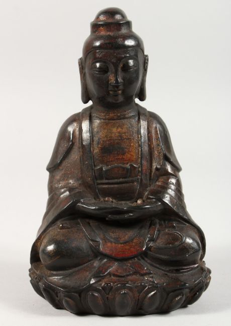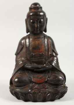 A CHINESE BRONZE SEATED GOD.
